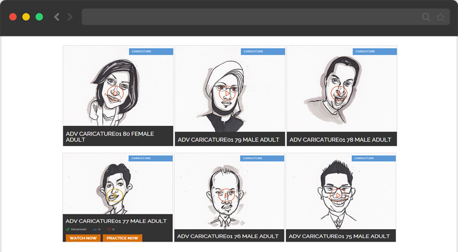 We have developed more than 1000 demo videos to demonstrate drawing process by using ‘step by step’ technique. You will be able to learn and practice the process of creating drawing composition from the start to the end. We allow you to ‘pause’ and ‘repeat’ the process at your own comfortable pace.